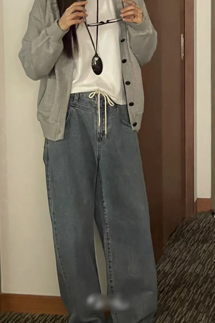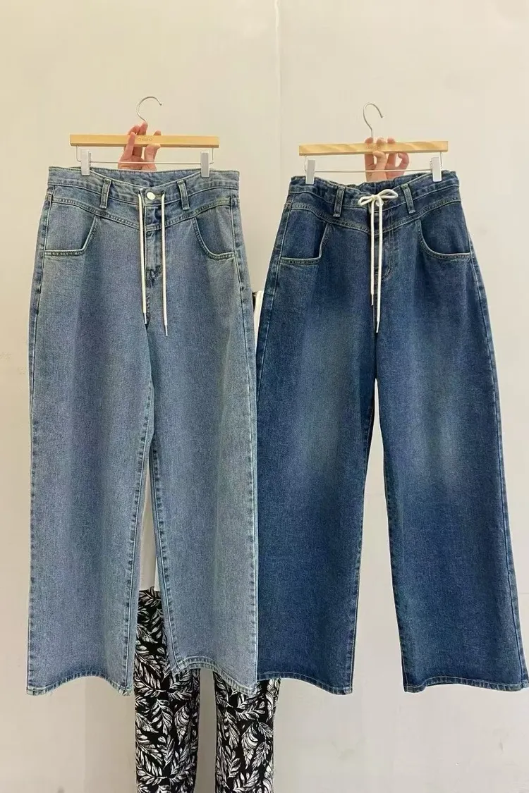 腰綁帶牛仔寬褲