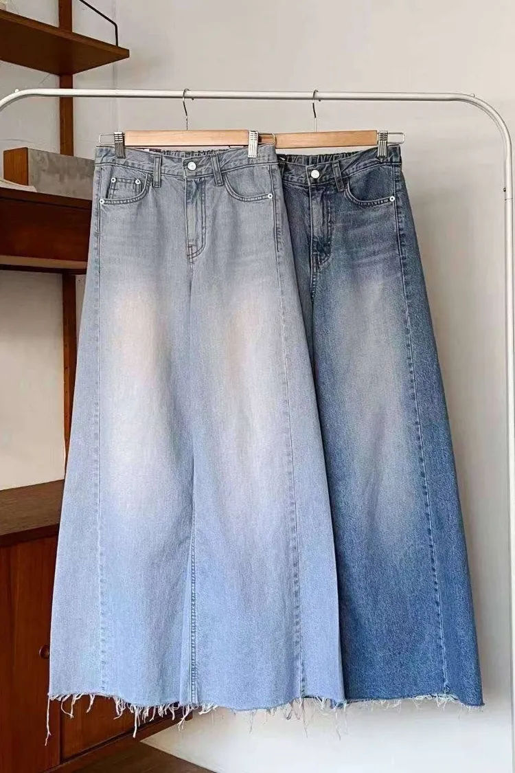 後彈性牛仔寬褲