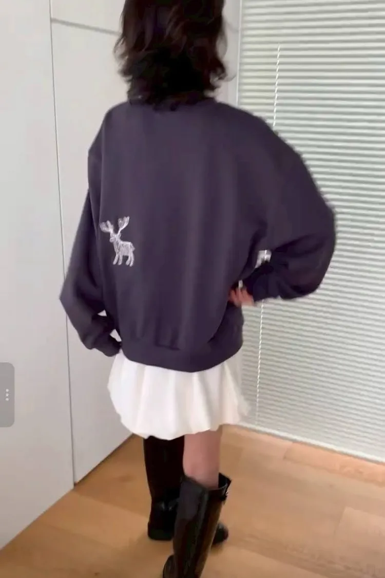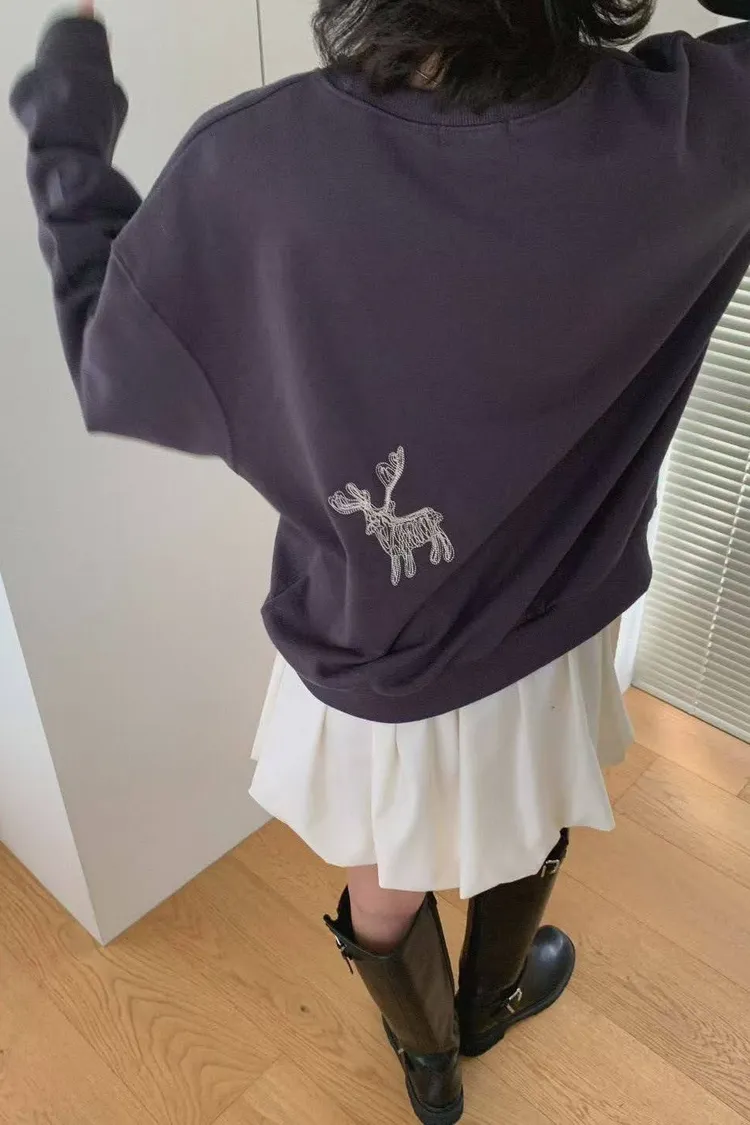 麋鹿刺繡棉T